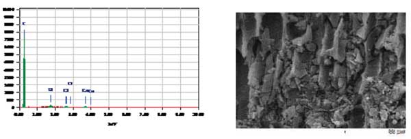 图1:活性炭的矿物质含量降低,并且在活性炭表面有更大、更粗糙的孔隙。