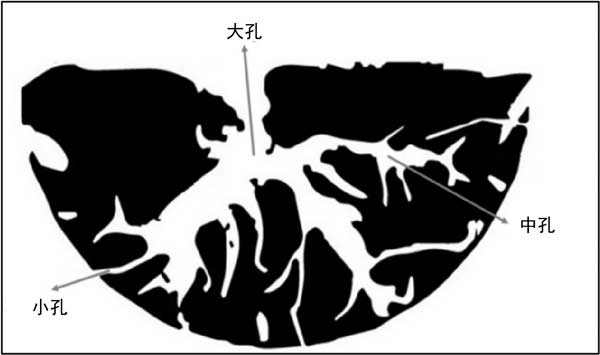 除了活性炭的结晶和化学构型外,其多孔结构在各种应用中也起着至关重要的作用。活性炭的吸收能力与表面积、孔体积和孔径分布高度相关。它主要取决于原料的性质和化学处理。活性炭的多孔结构是在碳化过程中通过消除原材料中的非碳物质产生的,该原材料产生具有基本孔结构的固定碳块,并在活化过程中进一步发展。活化过程扩大了碳化过程中产生的孔隙的直径,同时产生了一些新的孔隙,从而形成了一个发达的多孔结构。活性炭中的孔隙分布在各种尺寸和形状上。所得活性炭的孔径分布主要受浸渍程度的影响。活化和碳化条件是影响所得活性炭孔隙率类型的最关键参数。活性炭对孔径的分类如下:大孔(>50nm)、中孔(2–5nm)和微孔(<2nm)。微孔可以进一步细分为超微孔(<0.5nm)和超微孔(1-2nm)。中孔作为吸附物分子通过微孔网络的通道。大孔没有任何意义,但它们有助于引导金属离子进入中孔和微孔表面。活性炭的特征孔径分布如图2所示。