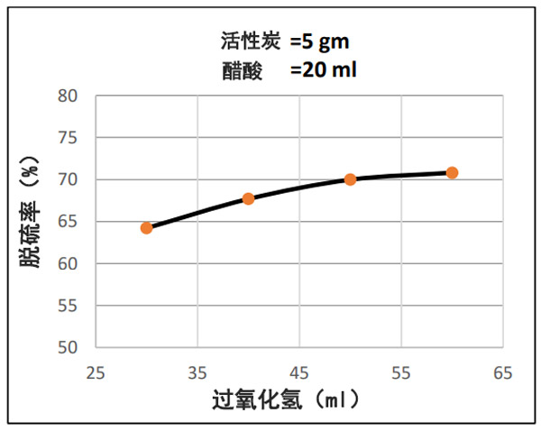 图2:所用样品中脱硫百分比与H2O2含量之间的关系。