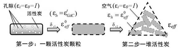 图1:用于导出介电常数和活性炭孔隙体积之间关系的示意图。