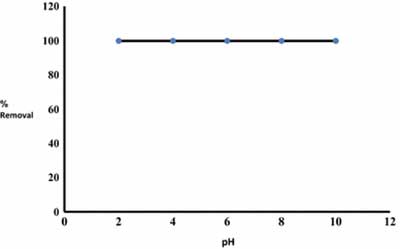 图2.使用活性炭去除草酰胺的pH值(初始草酰胺浓度500mg / L,室温下活性炭剂量1g / 100mL)。