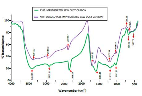 聚合物浸渍活性炭的制备:锯屑通过筛板筛分以获得均匀尺寸(0.5mm)的颗粒用浓硫酸(50g / 10g)处理2h,得到活性炭粉末。然后用碳酸钠(0.1N)处理中和直到泡腾停止,并在100℃的热空气烘箱中再次干燥。将碳化后的产物用60%PSSS(1:1%wt / v活性炭和PSSS)在旋转振荡器中在200rpm下搅拌约24小时,然后用蒸馏水直至被清洗的水的pH为中性,最后将活性炭样品在100℃的热空气烘箱中干燥制成。