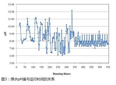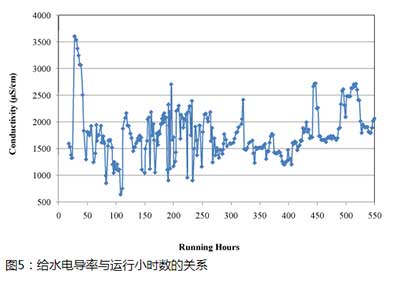 在此任务期间,活性炭综合处理系统每天进行操作和测试,每天监测和记录pH,温度,饲料压力,流速,饲料电导率和浊度等操作参数。如图2所示,系统给水温度在冬季和夏季分别在24.90和41.30℃之间。如图3所示,此期间给水的pH在6.06和12.17之间。进料浊度值和滤液浊度值分别在6.59-429NTU和0.09-17.4NTU,如图4所示。浊度测量单元是过滤器制造商推荐的浊度浊度单位(NTU)。进水的电导率也进行了监测,发现在监测期间(图5)所示的电导率在79.9和3610μS/ cm之间。在实验测试程序开始时,试验系统在可变操作条件下进行测试,以确定系统的最佳操作条件。进水的电导率也进行了监测,发现在监测期间(图5)所示的电导率在79.9和3610μS/ cm之间。在实验测试程序开始时,试验系统在可变操作条件下进行测试,以确定系统的最佳操作条件。进水的电导率也进行了监测,发现在监测期间(图5)所示的电导率在79.9和3610μS/ cm之间。在实验测试程序开始时,试验系统在可变操作条件下进行测试,以确定系统的最佳操作条件。